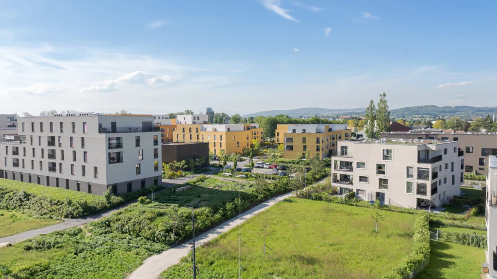 Les Portes-du-Lac est un quartier principalement résidentiel de 650 logements, livré en plusieurs phases. Développé selon les principes de Eclosia by Gefiswiss, le quartier propose une épicerie de produits locaux, une salle commune, un parcours biodiversité, des jardins ou encore un guide pour habitant·e.
